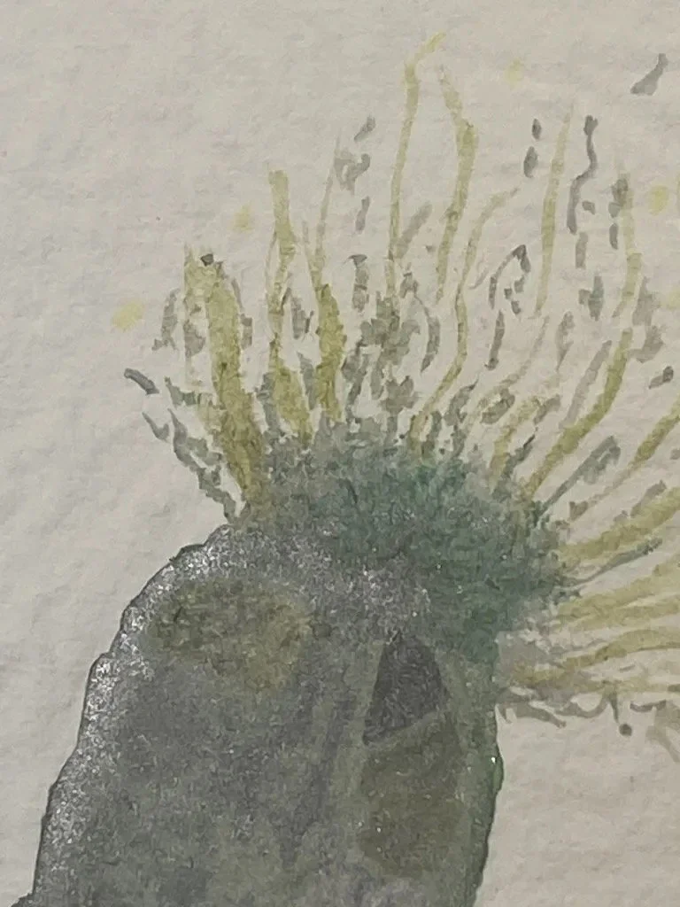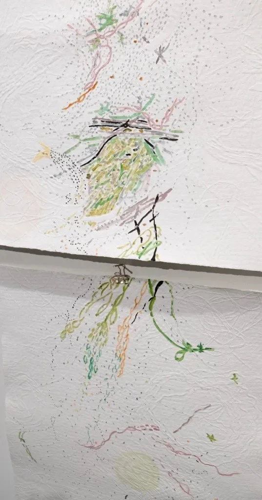 Images of score pages, painted by Deborah Carruthers with inks created by Jason Logan